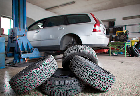 Beim Radwechsel werden Räder montiert und ausgewuchtet. Beim Pneuwechsel wird ein neuer oder der Reifen aus der Vorsaison auf die Felgen aufgezogen und anschliessend ausgewuchtet.